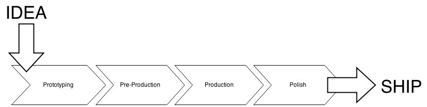 Moving from left to right through the stages in the diagram should lead to a firming up of the game ideas. It’s an oft said thing that the initial game concept bears only a passing resemblance to the final game and that’s because ideas are just the starting point. Ideas need to be tested and refined, preferably in the crucible of real player experience. This is one reason why putting a massive amount of time into a monolithic design document before anyone starts making anything is a terrible idea. Moving through the lifecycle stages should also firm up knowledge about when the game will be shippable and the scope of work remaining. For a lot of projects this doesn’t happen though and I think a decent Agile approach that takes some ideas from Lean would help approach the lifecycle stages with the right mindset.