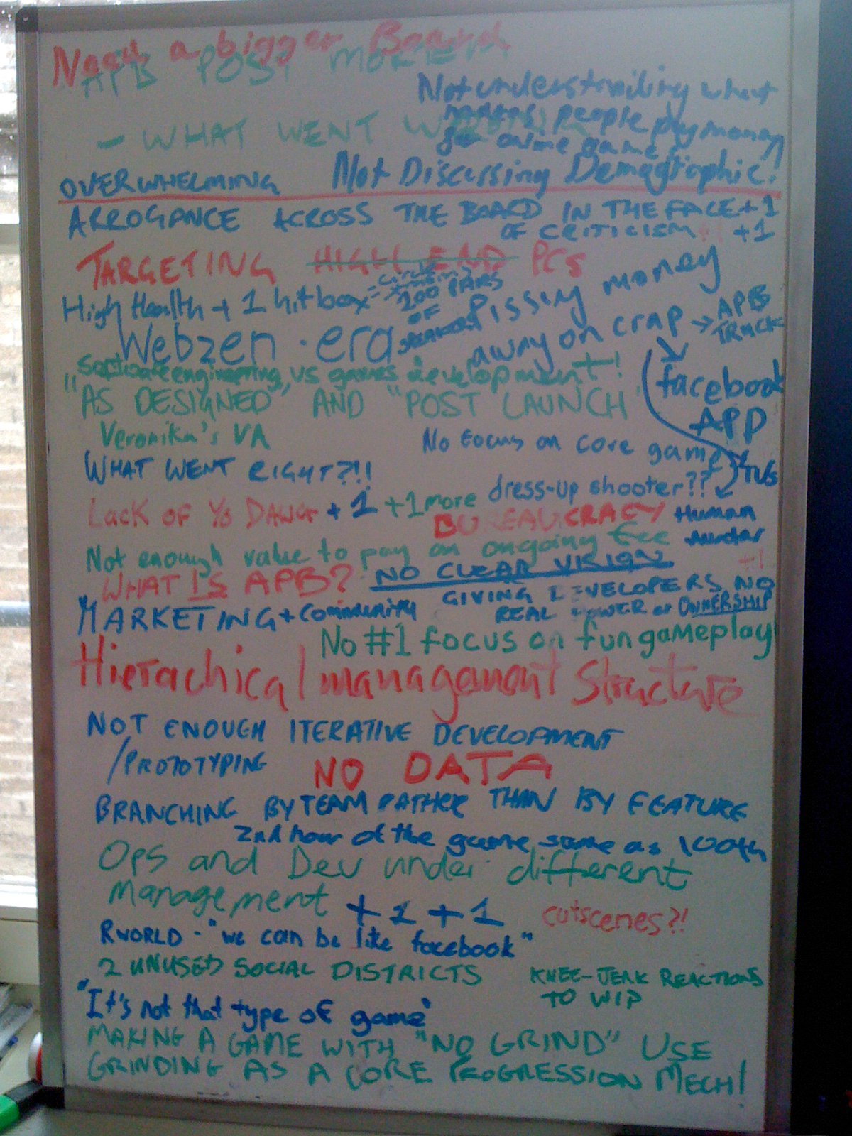 It’s a truism that it’s quicker to explore a space by splitting up and taking different sections. Double Fine’s Amnesia Fortnight is a good example of how this might work in practice within a small/medium sized company. Likewise Vlambeer demonstrate that even as a tiny studio by severely limiting the amount of time you spend on a prototype you can hit many different ideas including some that become successes. In an ideal reality concepts should be something that are being developed all the time. Who doesn’t have a book of design ideas juggling around in their head or transferred to paper? Creating a prototype is more time consuming but critically allows a better understanding of how well the proposed idea meets the constraints and how feasible it is for a given team to develop. The more prototypes you can create the better you have explored the space and the more likely you’ll have come across the true maxima in that space. For larger companies it makes sense to have many small teams prototyping at once and as one or more ideas become more concretely ‘the best’ begin to structure those teams around moving them into pre-production. Sadly what you’ll mostly see are a lot of companies that have one small team working on one particular idea without really bothering to more fully explore the design space. This usually results in companies paying lip service to the production lifecycle without really buying into it because there are no real alternatives to the one project in flight.